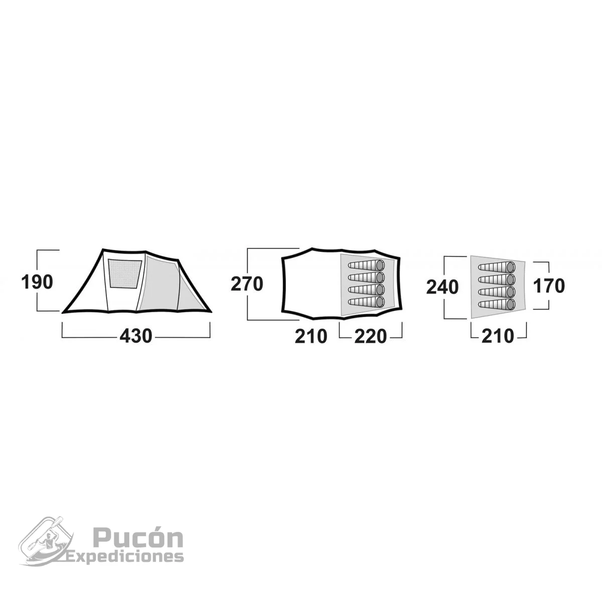 La construcción del túnel con postes de Durawrap reforzados hace que montar la tienda sea muy rápido y fácil. Tanto la tienda interior como exterior y la lona de suelo están fabricadas con materiales de calidad que aseguran una alta resistencia, buena permeabilidad y suficiente comodidad para hasta 4 adultos. Las grandes proporciones del Baul lo hacen ideal para viajes de campamento más largos con la familia o un grupo de amigos. También apto para palistas de ciclistas que viajan con coche.