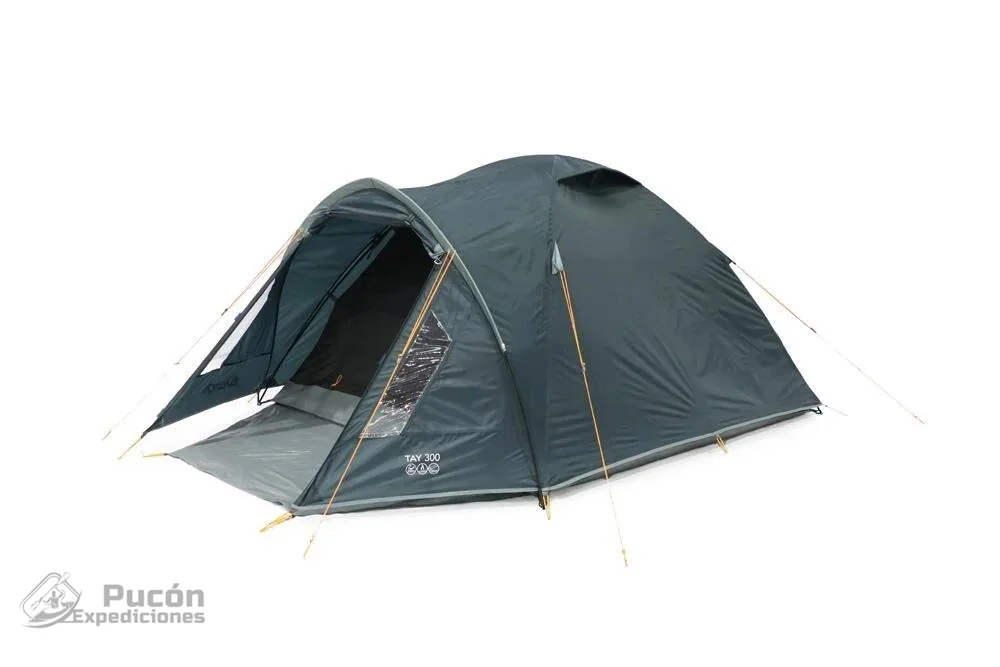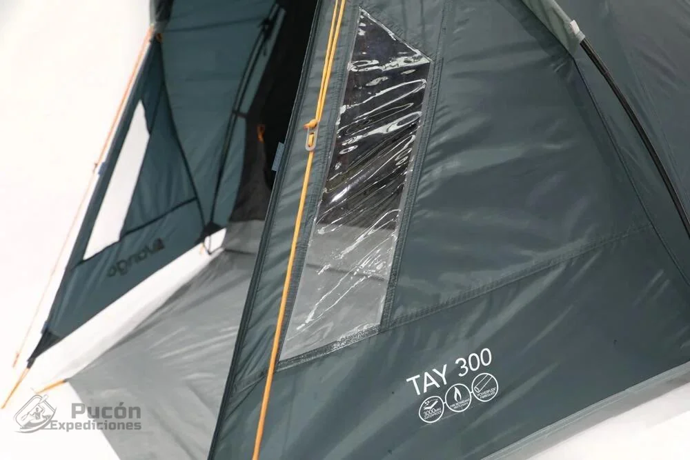 La Tay 300 es una tienda estilo cúpula con varillas de arco gótico, que proporciona refugio de la intemperie en la entrada. El estilo de cúpula crea un gran espacio y estabilidad, y se beneficia de un tamaño de paquete pequeño. Las ventanas transparentes permiten la entrada de luz en la zona del vestíbulo. Esta tienda es la elección ideal para los que acampan por primera vez o para los que van a camping familiar.