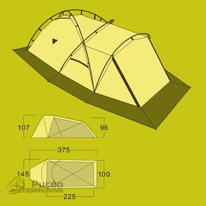 La carpa Yar 200 fue diseñada para el mercado Chileno, debe su nombre a la lengua Selknam y significa Piedra. A diferencia de los otros modelos de 4 estaciones. La carpa Yar 200 incluye faldones para nieve y además, el cubre techo se cuelga con mucha facilidad y rapidez a las varillas por medio de ganchos. Por último, el vestíbulo extendido, crea un gran espacio para guardar equipaje, cocinar y/o comer cuando el tiempo no te permite estar afuera