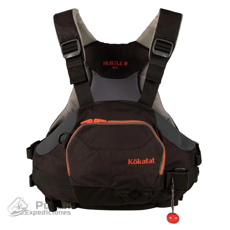 El HustleR presenta un arnés de liberación rápida, un accesorio de anillo en D para la cola de vaca estándar o Touring Tow Tether, una funda diseñada para adaptarse al River Tow Tether de Kokatat y una pestaña delantera cubierta para el cuchillo de rescate. El gran bolsillo frontal es extra profundo con cremallera bidireccional permite la organización interna. Fabricado en Rugura 500D Cordura, dos paneles de espuma precurvados apilados y esculpidos envuelven y flotan alrededor del torso para permitir un ajuste óptimo en varios tamaños de torso. Tiene un diseño pull over con hombros ajustables y tres ajustes laterales para un ajuste seguro.