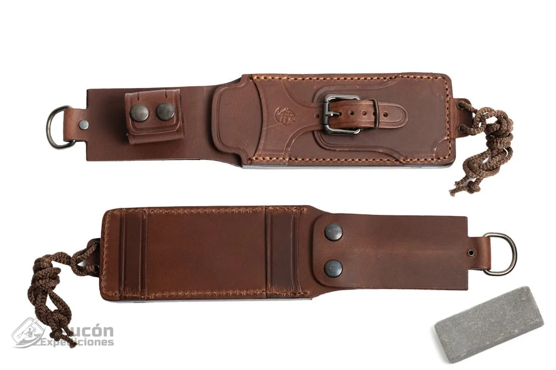 – Extras: Funda de piel de primera calidad con bolsillo y hebilla + Piedra afiladora.