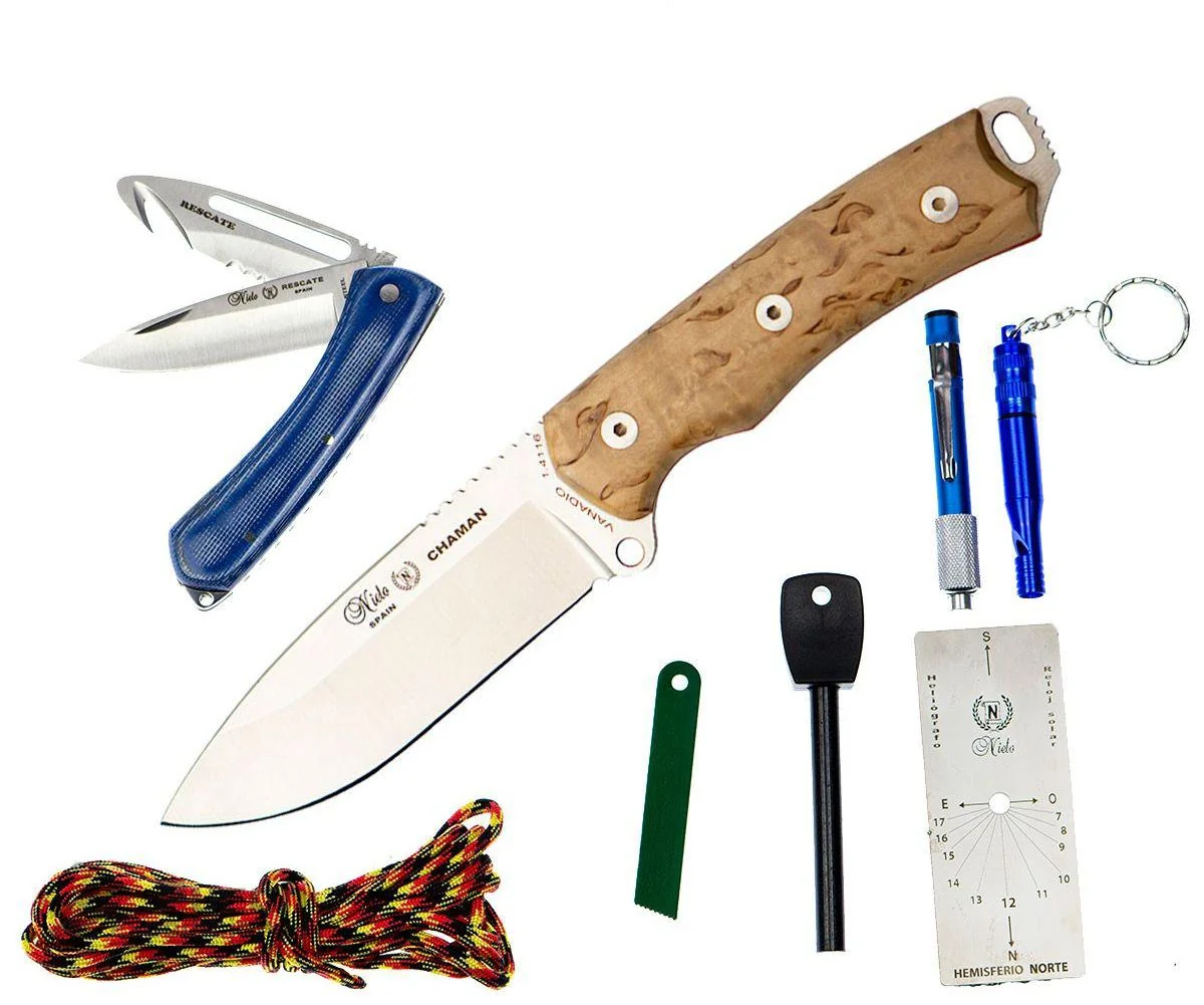 Dentro de la Serie Chaman Kit Plus el usuario podrá encontrar los elementos necesarios para cualquier tipo de actividad de supervivencia (orientación, senderismo). Así mismo, tendrá la posibilidad de elegir entre tres modelos de cuchillo que varían en el acabado de la empuñadura, todas ellas de gran durabilidad.