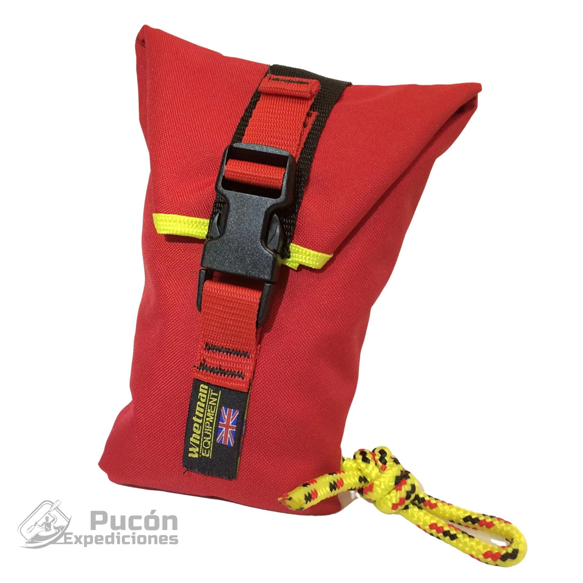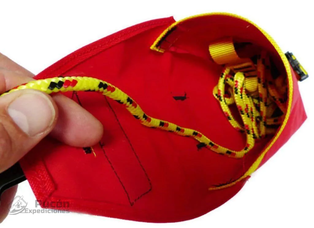 La bolsa de tiro está hecha de lona de poliéster resistente. El cierre es una hebilla que también se puede usar para agarrar al lanzar y al volver a empacar. En la base de la bolsa hay un flotador.