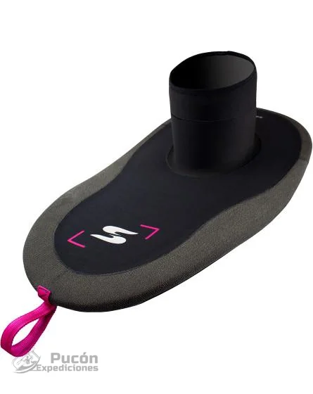 Se aplica una capa de caucho Sika alrededor del borde interior de la falda. Esto aumenta la fuerza general de la cubierta y asegura un excelente agarre al labio del kayak. El tubo está hecho de neopreno de 3 mm, mientras que la parte del borde superior es neopreno reforzado ‘’Mesh’’. Esta solución garantiza un agarre impecable en su torso, evitando que el tubo se deslice de su cintura, asegurando un perfecto sellado contra el agua.