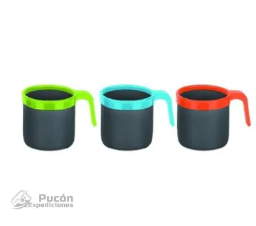 El jarro Outdoor Cup está fabricado en Aluminio. El asa y el labio son de plástico de grado alimenticio para aumentar su funcionalidad. Disfrura de un café o te calientes. O de una cerveza bien helada.. no limites su uso